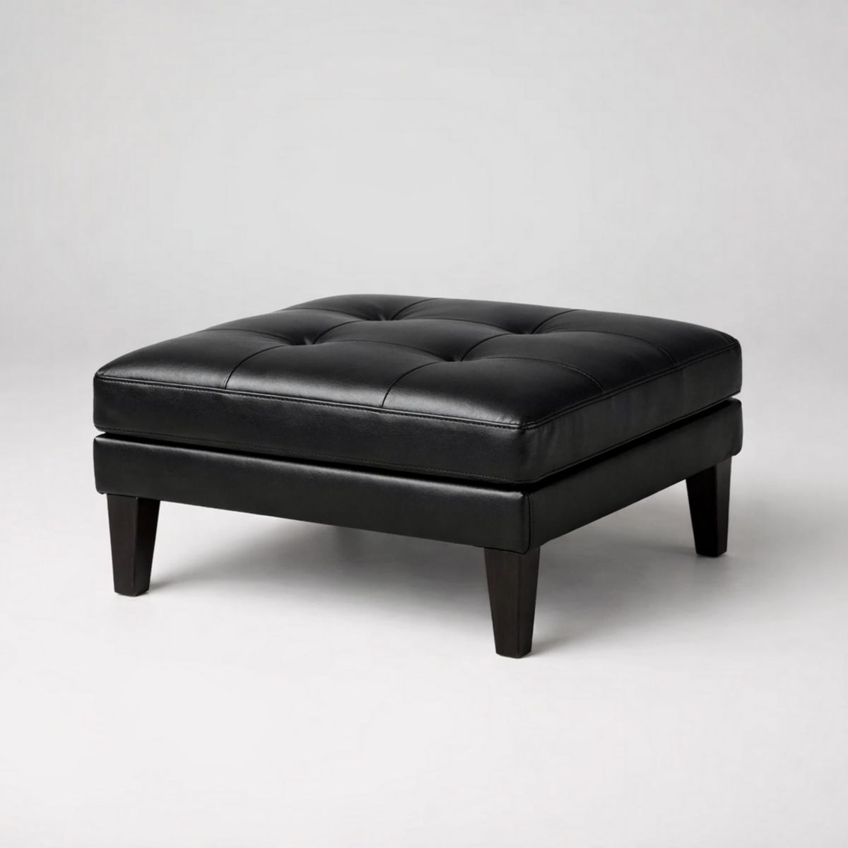 Quadratische schwarze Ottomane aus Kunstleder mit Holzbeinen